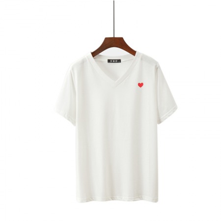 Fat Plus Size Women's Pure Color Wild Thin Love Printing Short-Sleeved T-Shirt Women