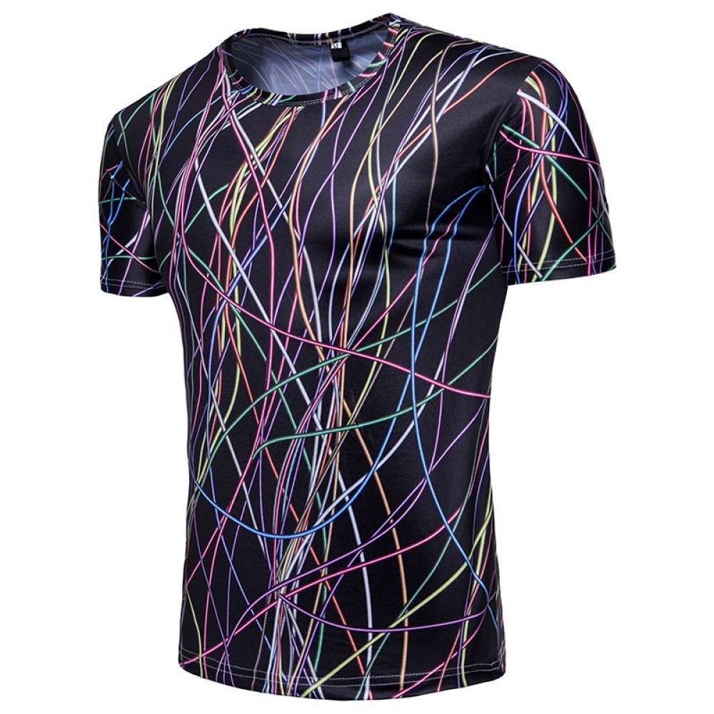 Men's 3D Short-Sleeved Printed T-Shirt Line Printing Design Casual T-Shirt Sports T-Shirt