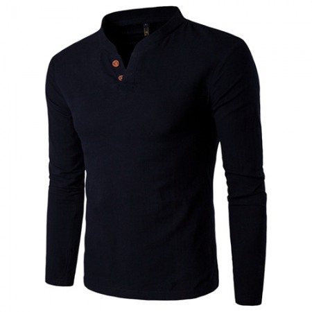 Men's Plus Size Plus Velvet Warm Henley Collar Long-Sleeved T-Shirt Bottoming Shirt