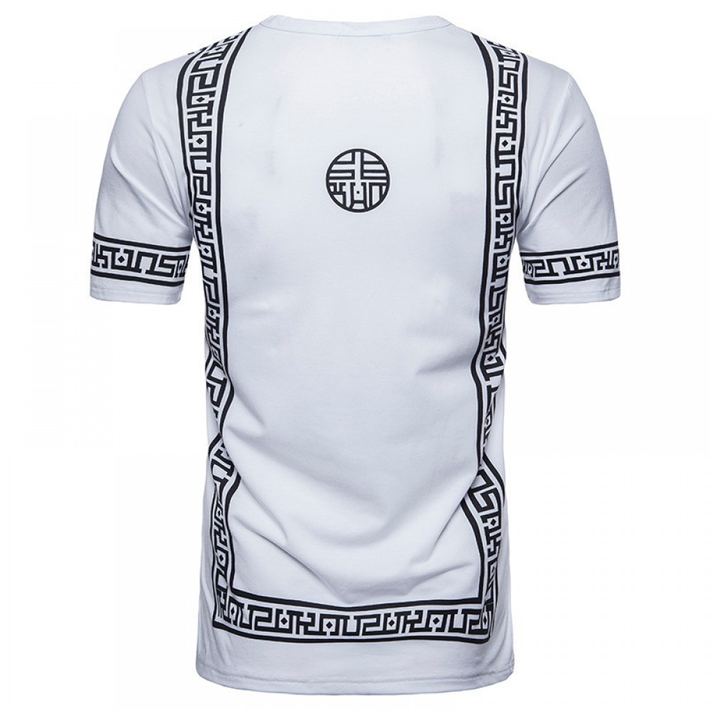 New Year Lapel Short Sleeve Men's Casual T-Shirt White Bottoming T-Shirt