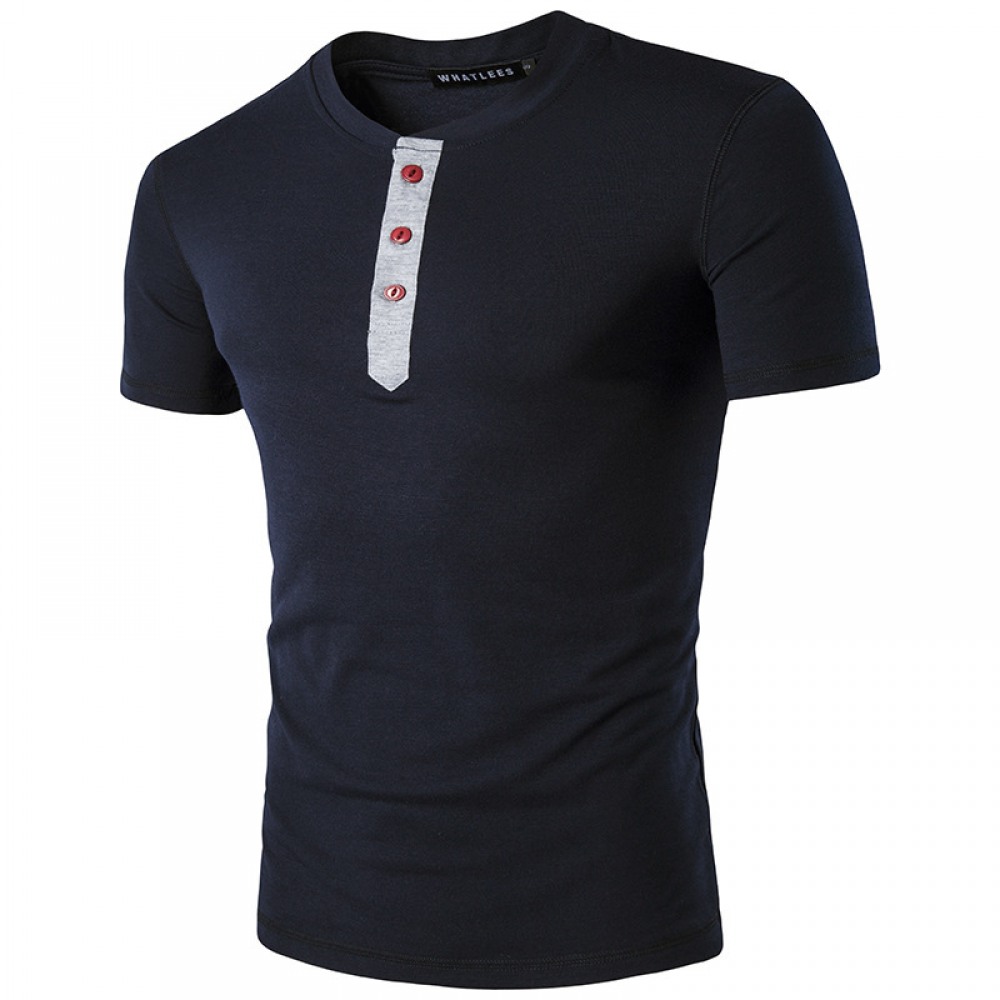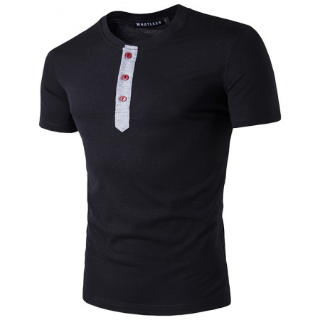 New Year Lapel Short Sleeve Men's Casual T-Shirt White Bottoming T-Shirt