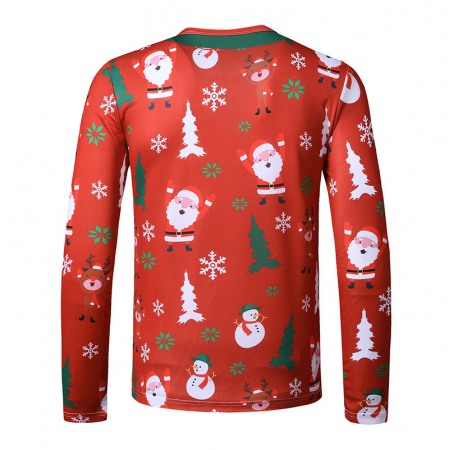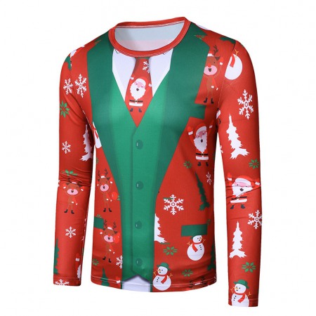 New 3D Personality Fake Two-Piece Printing Fashion Men's Christmas Long-Sleeved T-Shirt