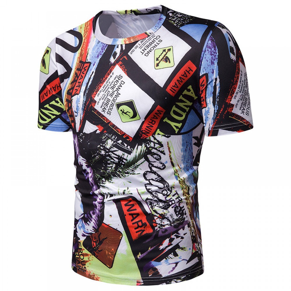 New Summer Men's Beach Style Printed Short-Sleeved T-Shirt